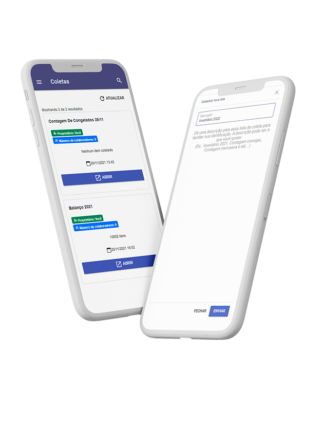 O cara do estoque é um coletor de dados completo. Ele usa a câmera do celular como leitor de códigos de barras, é super eficiente e ainda é possível adicionar colaboradores para te ajudar no processo de coleta. Após finalizado, o app envia sua lista de coleta através de um e-mail informado por você em txt ou Excel para importação no seu sistema ERP.